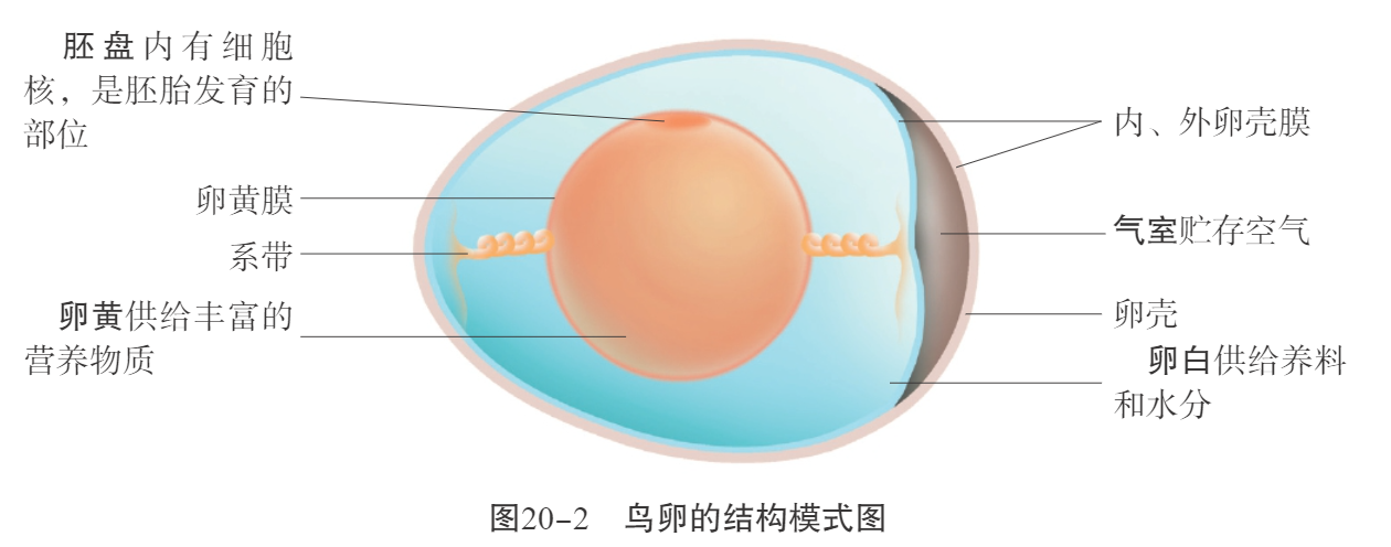 ④对照图20-2,辨认鸡蛋的结构。(图20-2请点击查看详解)