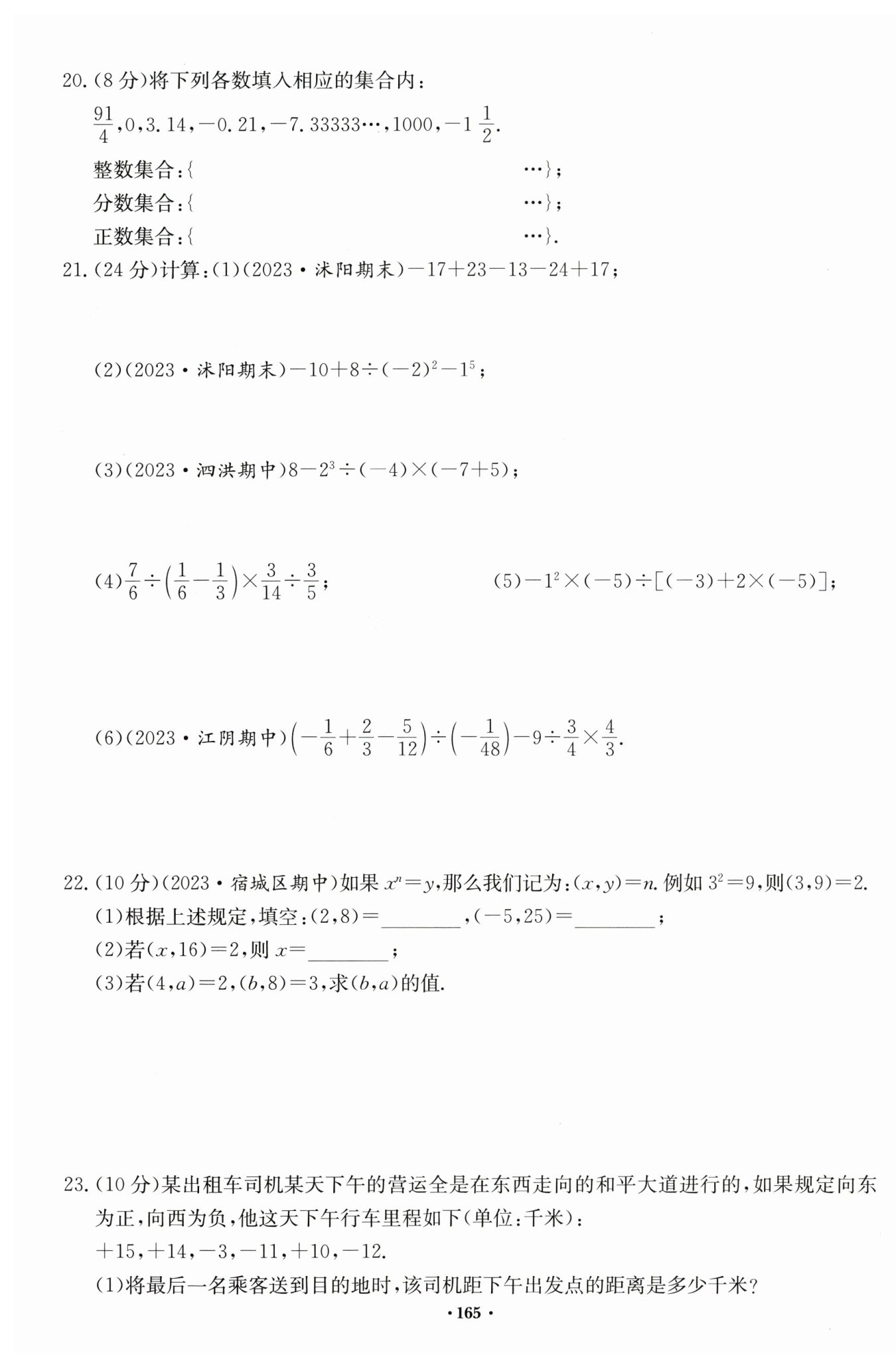 $23.(1)解:+15+14-3-11+10-12$ $=15+14+10-3- 11-12$ $=39-26$ $=13(千米)$ $答:将最后一名乘客送到目的地时,该司机距$ $下午出发点的距离是13千米。$
