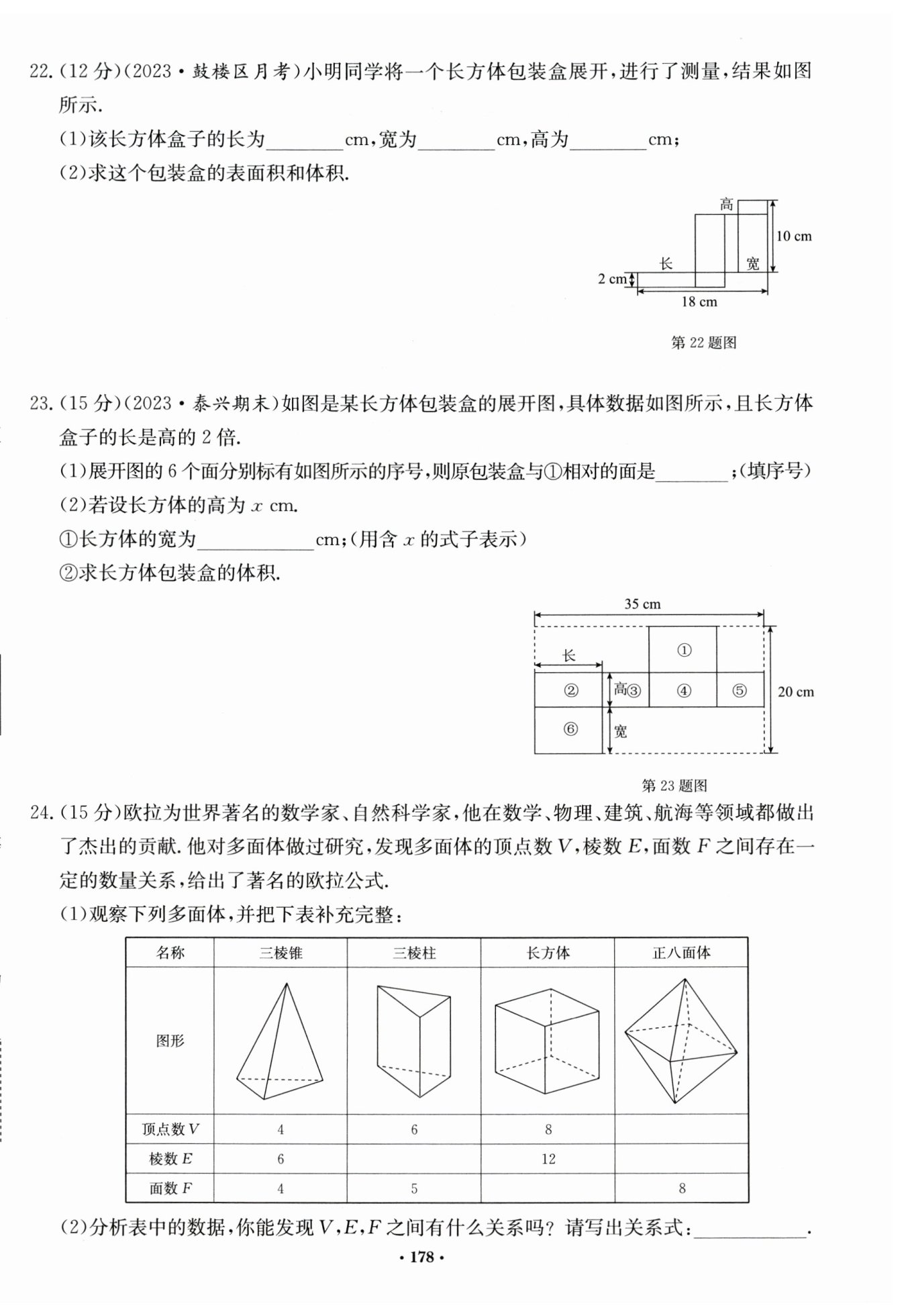 $答:这个包装盒的表面积为112cm^{2},体积为64cm^{3}。$