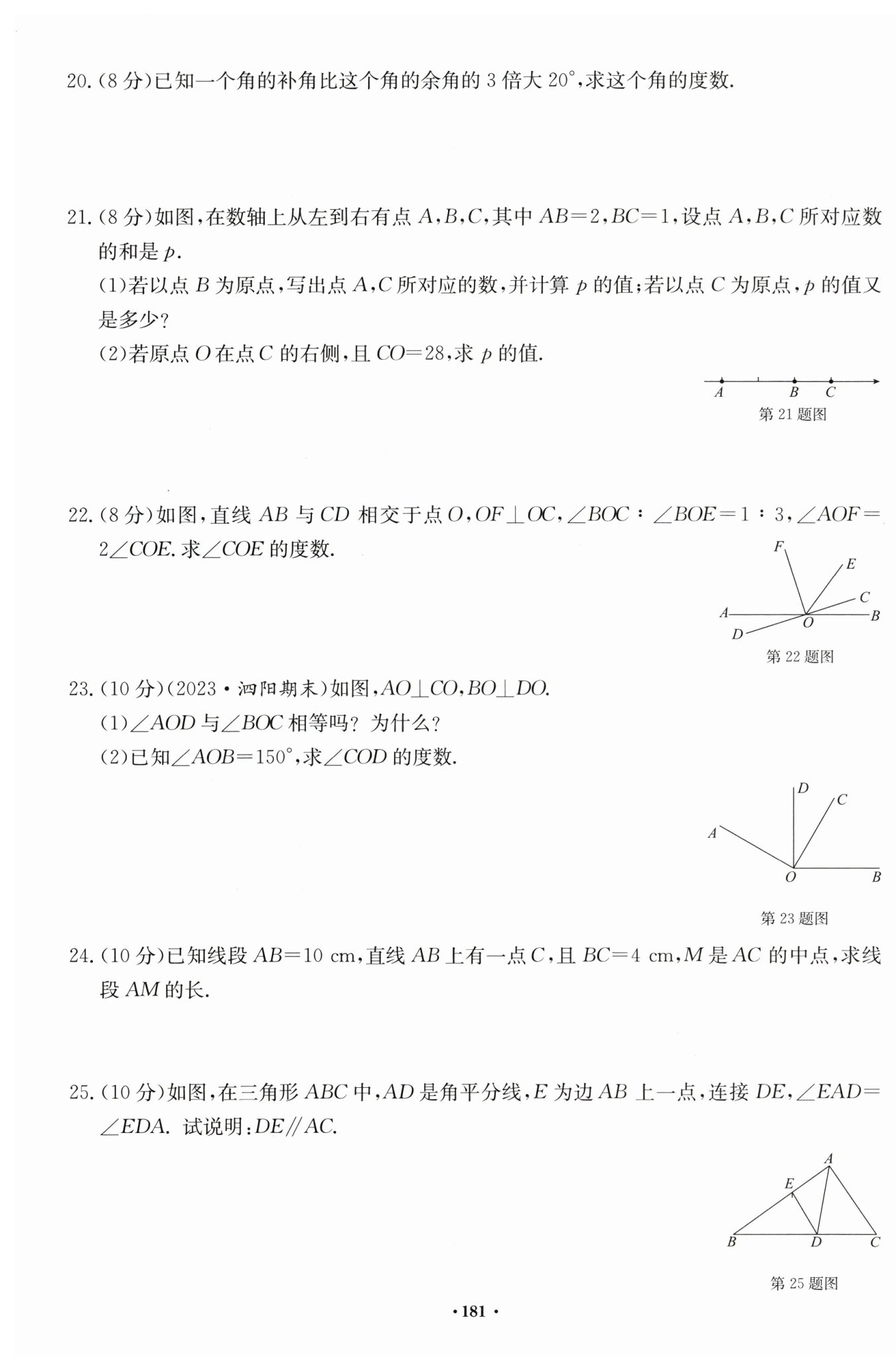 $21.(1)解:若以点B为原点,则点C表示的数是$