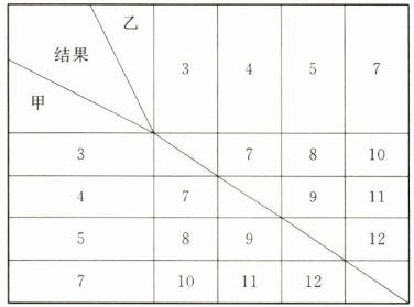 $所以这两个小球上数字之和为9的结果有12×\frac{1}{3}=4(种),$