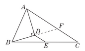 $解:如图,延长BD交AC于点F$ $∵BD⊥AD$ $∴∠ADB=∠ADF=90°$ $∵AD平分∠BAC$ $∴∠BAD=∠FAD$ $在△ADB和△ADF中$ $\begin{cases}∠ADB=∠ADF\\AD=AD\\∠BAD=∠FAD\end{cases}$ $∴△ADB≌△ADF$ $∴BD=FD,AB=AF=6$ $∴CF=AC-AF=10-6=4$ $又∵E为BC的中点$ $∴DE为△BFC的中位线$ $∴DE=\frac 12CF=2$