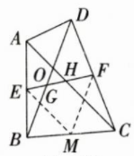 $证明:如图,取BC的中点M,连接EM,FM$ $∵ M,F分别是BC ,CD的中点$ $∴MF//BD,MF=\frac 12BD$ $同理,可得ME//AC,ME=\frac 12AC$ $∵AC= BD$ $∴ME=MF$ $∴∠MEF=∠MFE$ $∵MF //BD$ $∴∠MFE =∠OGH$ $同理,可得∠MEF=∠OHG$ $∴∠OGH=∠OHG$ $∴OG=OH$