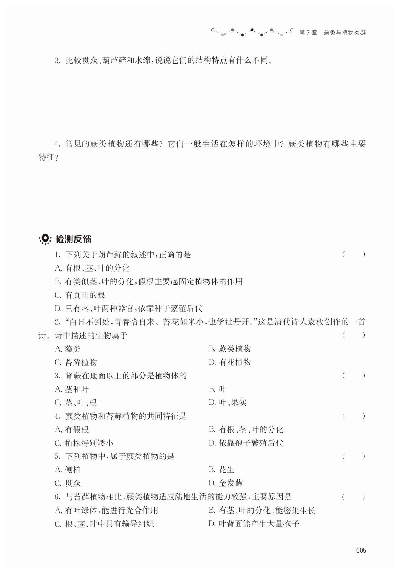 葫芦藓为苔藓植物,无根,只有假根,有茎、叶的分化,但体内无输导组织,生长矮小。