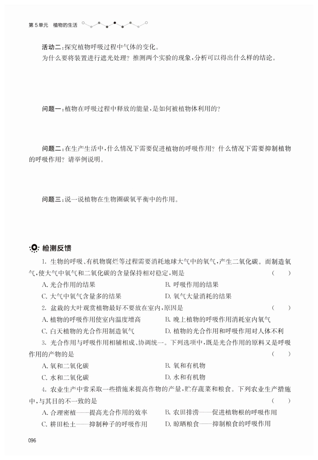 植物生长发育时,需要耕田松土、农田排涝,以促进植物根的呼吸作用;贮存粮食、蔬菜时
