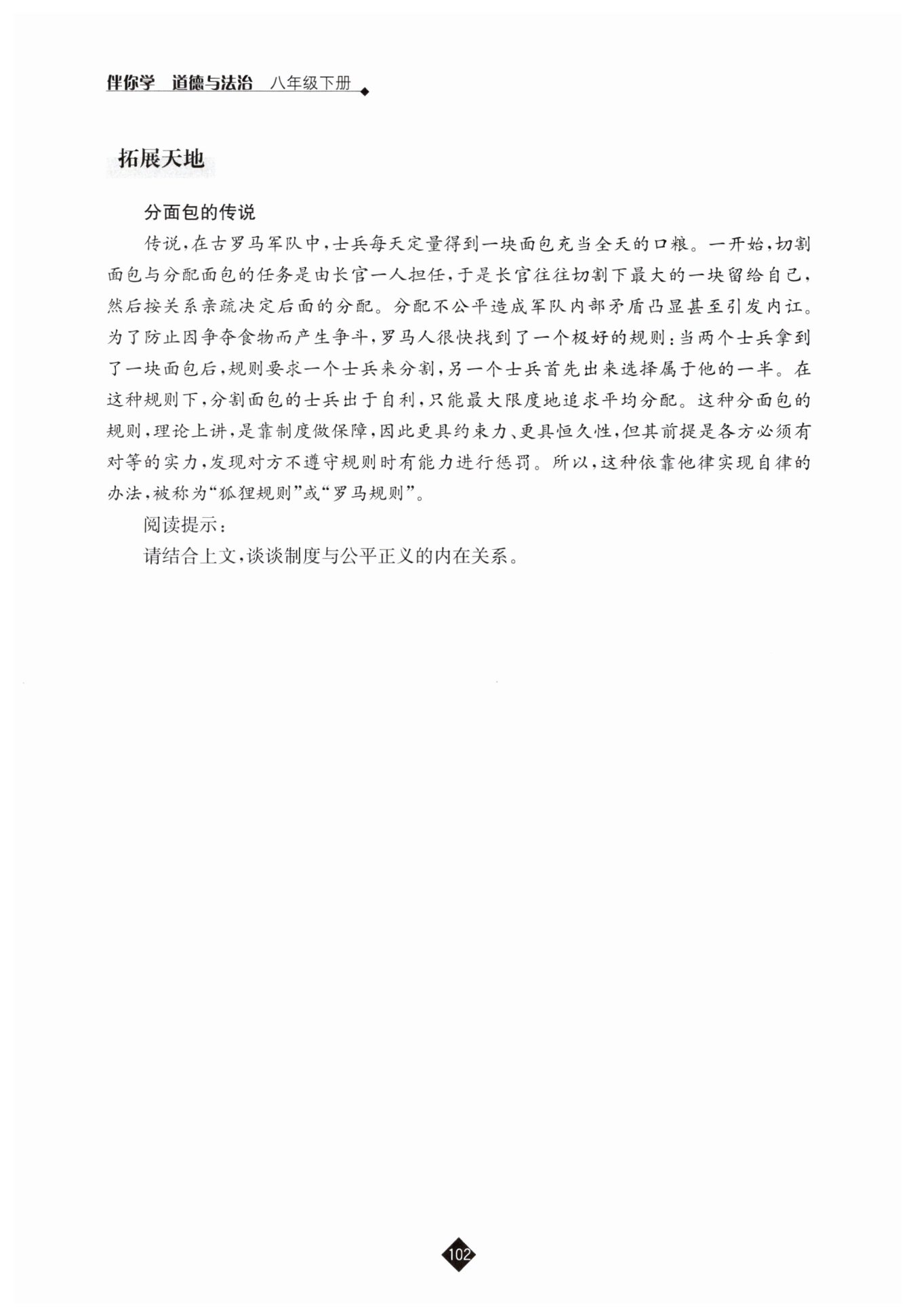 制度保障公平正义。制度的效用在于保障正义,古罗马分面包的规则靠制度做保障,更具约束力、更具恒久性,使分配更趋于公平。正义的制度能保障社会成员的基本