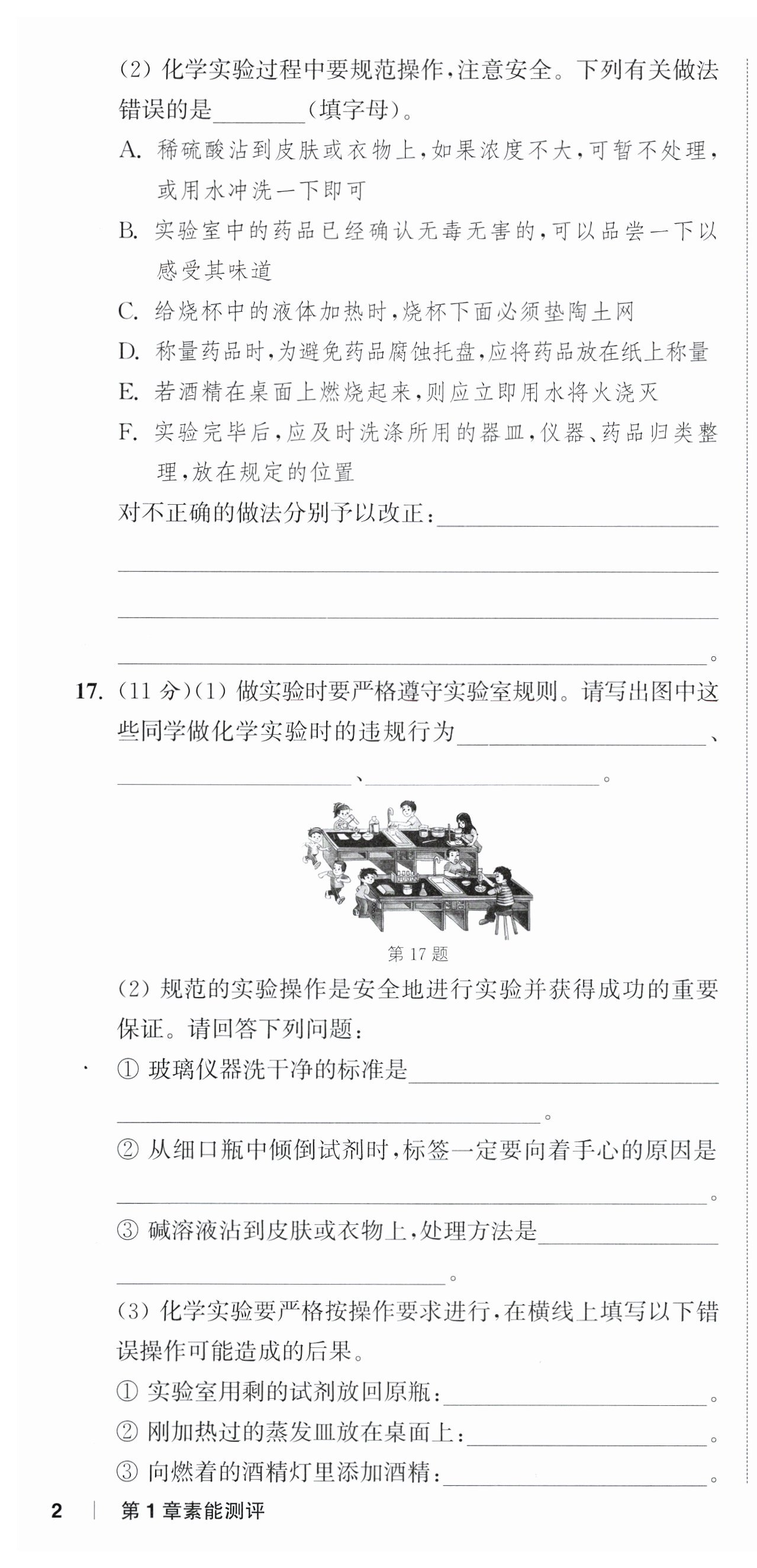 液;B:不要尝实验室中任何药品的味道;D:有腐蚀性的