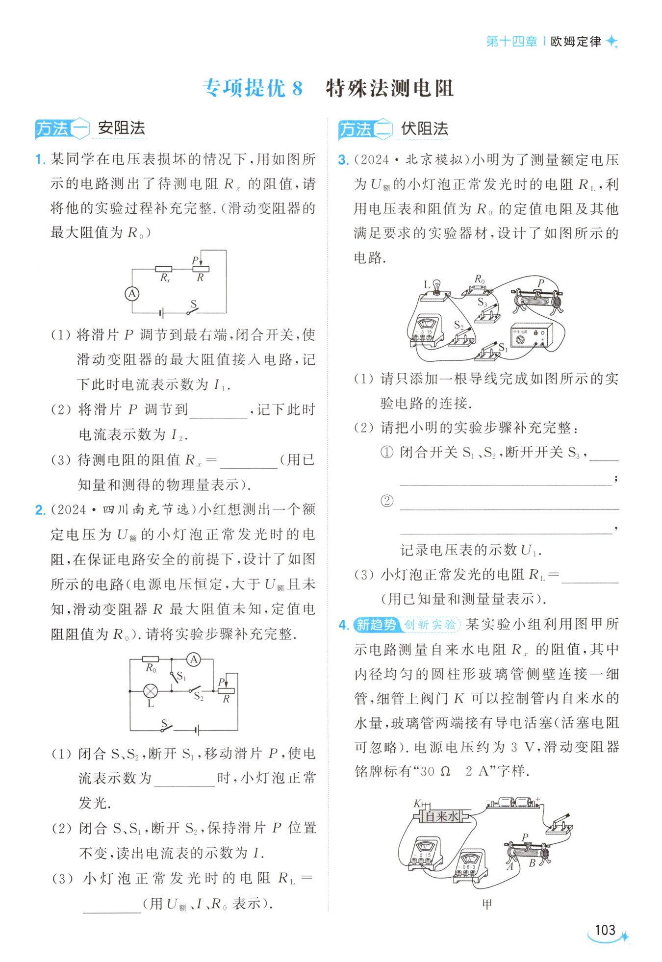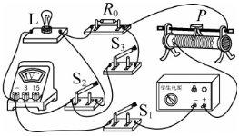 保持滑动变阻器滑片的位置不变,断开开关$S_{2},$闭合开关$S_{3}$
