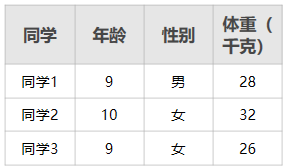调查本组同学年龄和体重数据,记录如下(假设数据):