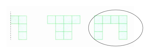 (2)左边一半是3列3行的部分图形,补全后应为左右对称的完整图形,第三个图案符合。