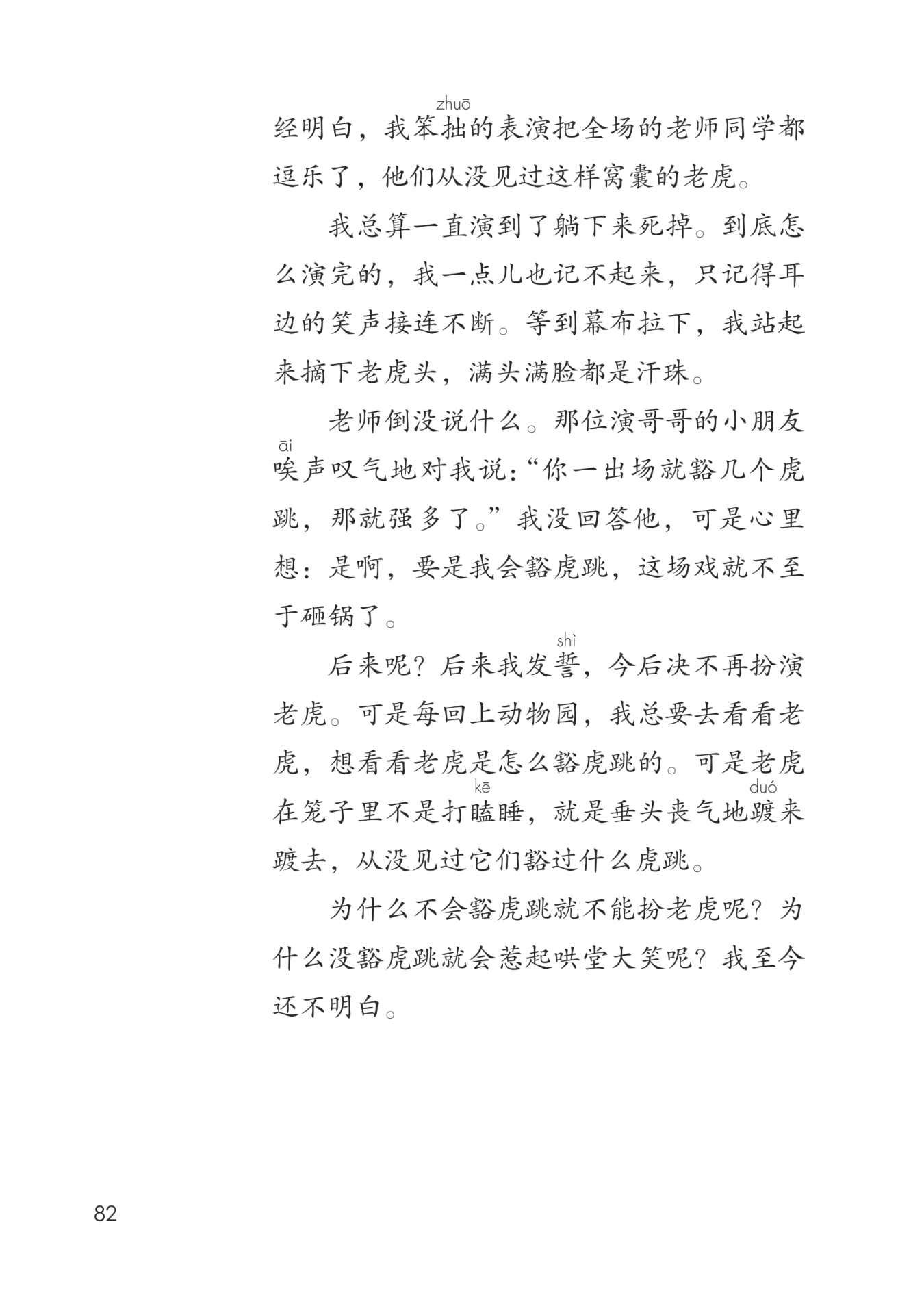 从这句话中可以看出“我”对如何扮演好老虎这一角色进行了学习、探究。