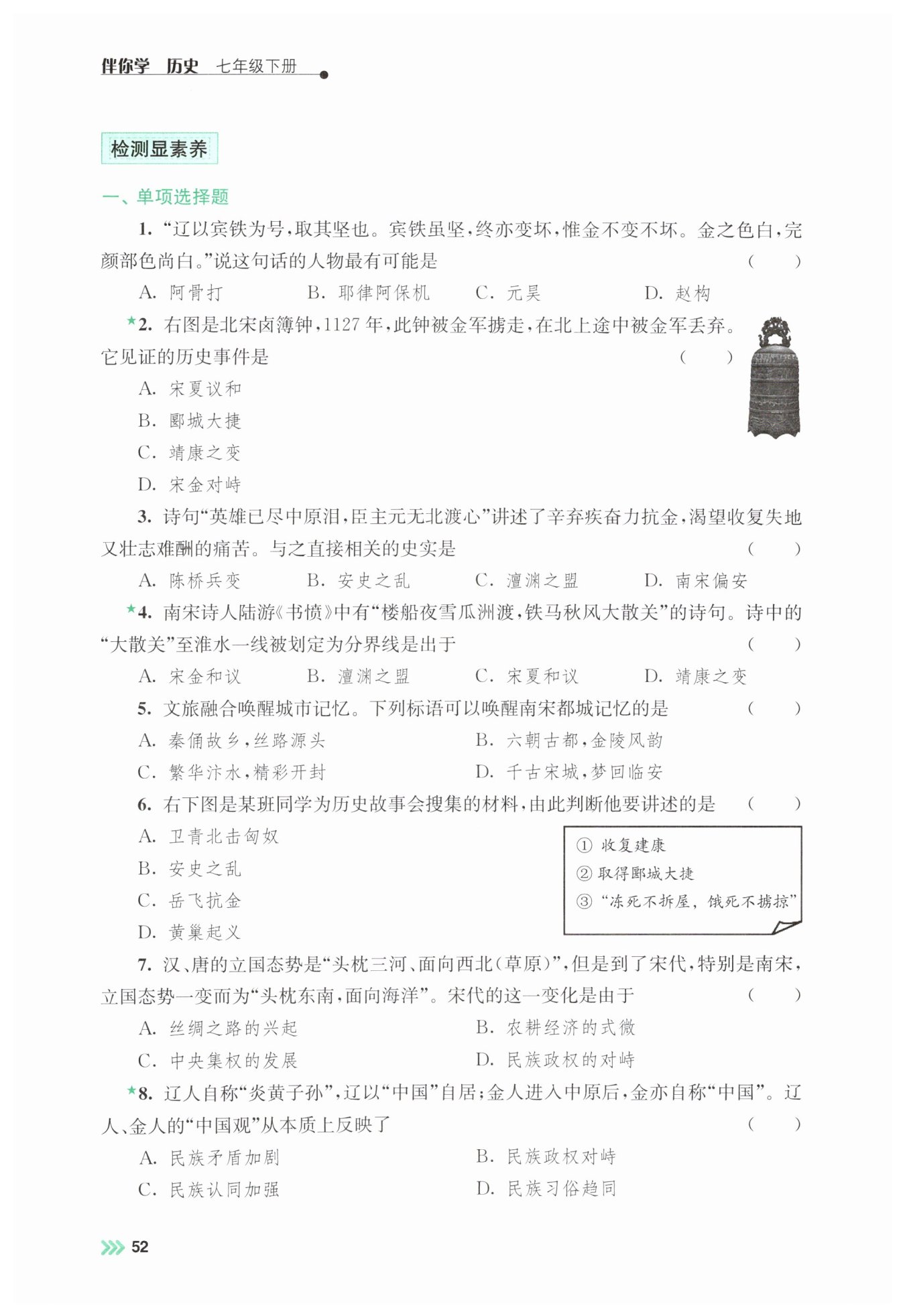 本题考查两宋时期少数民族政权的相关史实,重点考查不同政权建立者的身份及相关典故。解题关键在于准确识记各政权建立者的民族、所属政权,需注重基础知识的积累与区分。