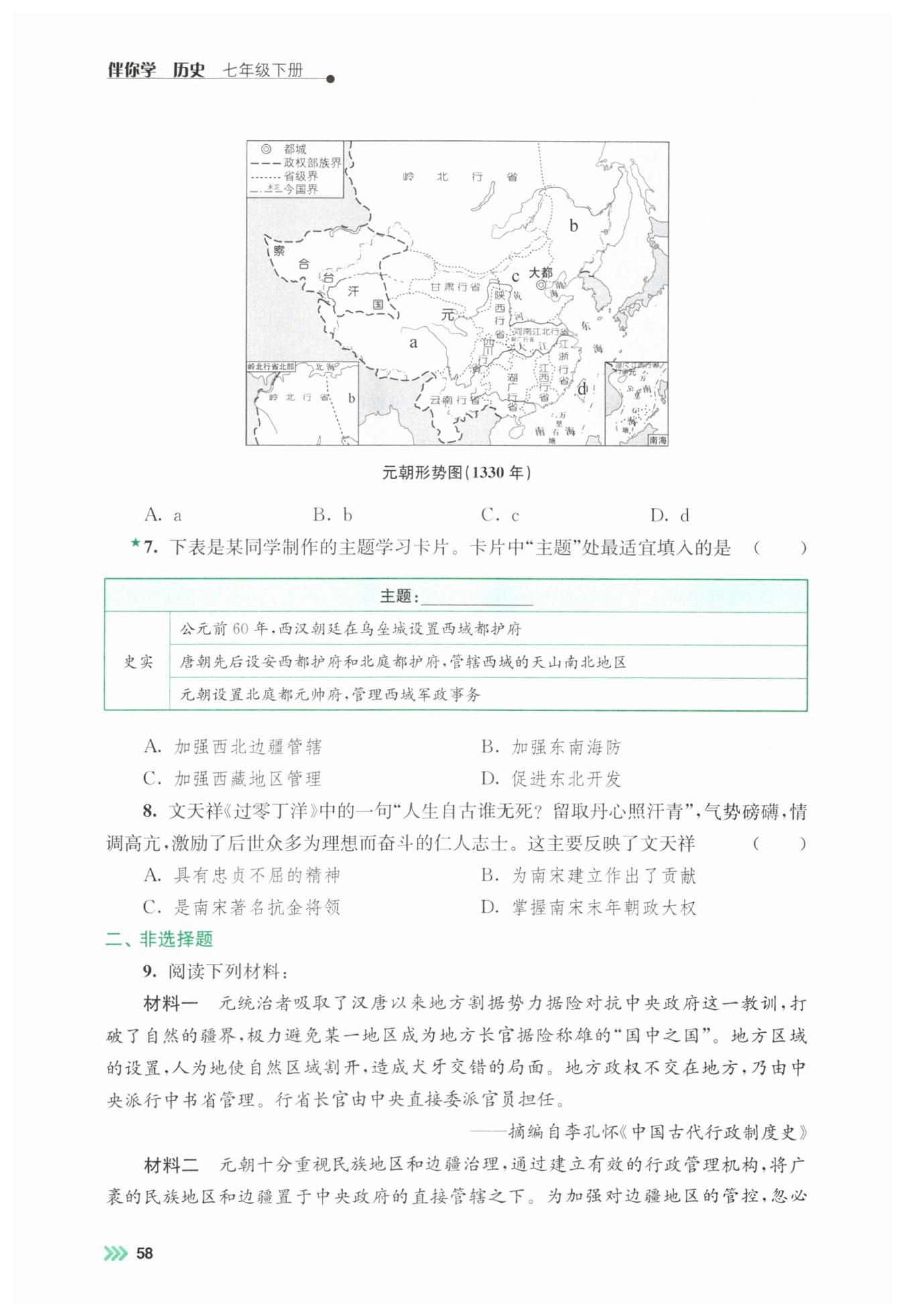 首先我们需要先明确表格中每个史实对应的管辖区域:表格里的西域,在地理范畴上属于我国的西北边疆地区。接下来我们逐一分析选项:先看选项B,东南海防针对的是东南沿海区域,和西域完全无关;选项C,西藏地区的管理机构比如元朝的宣政院,和表格里的机构不匹配;选项D,东北开发针对的是东北地区,也和西域没有关联。而表格里的三个机构都是古代王朝为了管辖西北边疆的西域地区设置的,所以要选择和西北边疆管辖相关的选项。