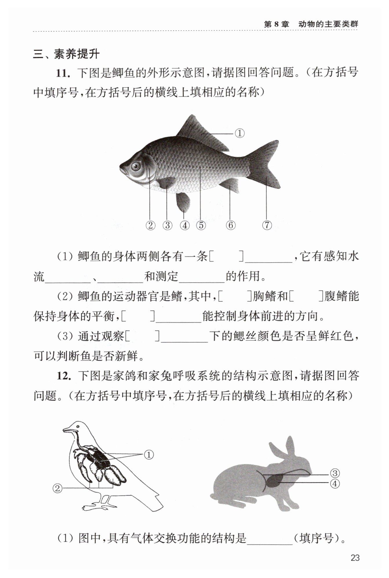 (2)家鸽体内的②气囊能够储存气体,可辅助肺进行双重呼吸,提高气体交换效率。