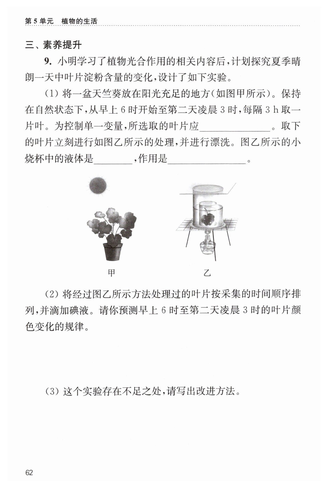 溶解叶片中的叶绿素