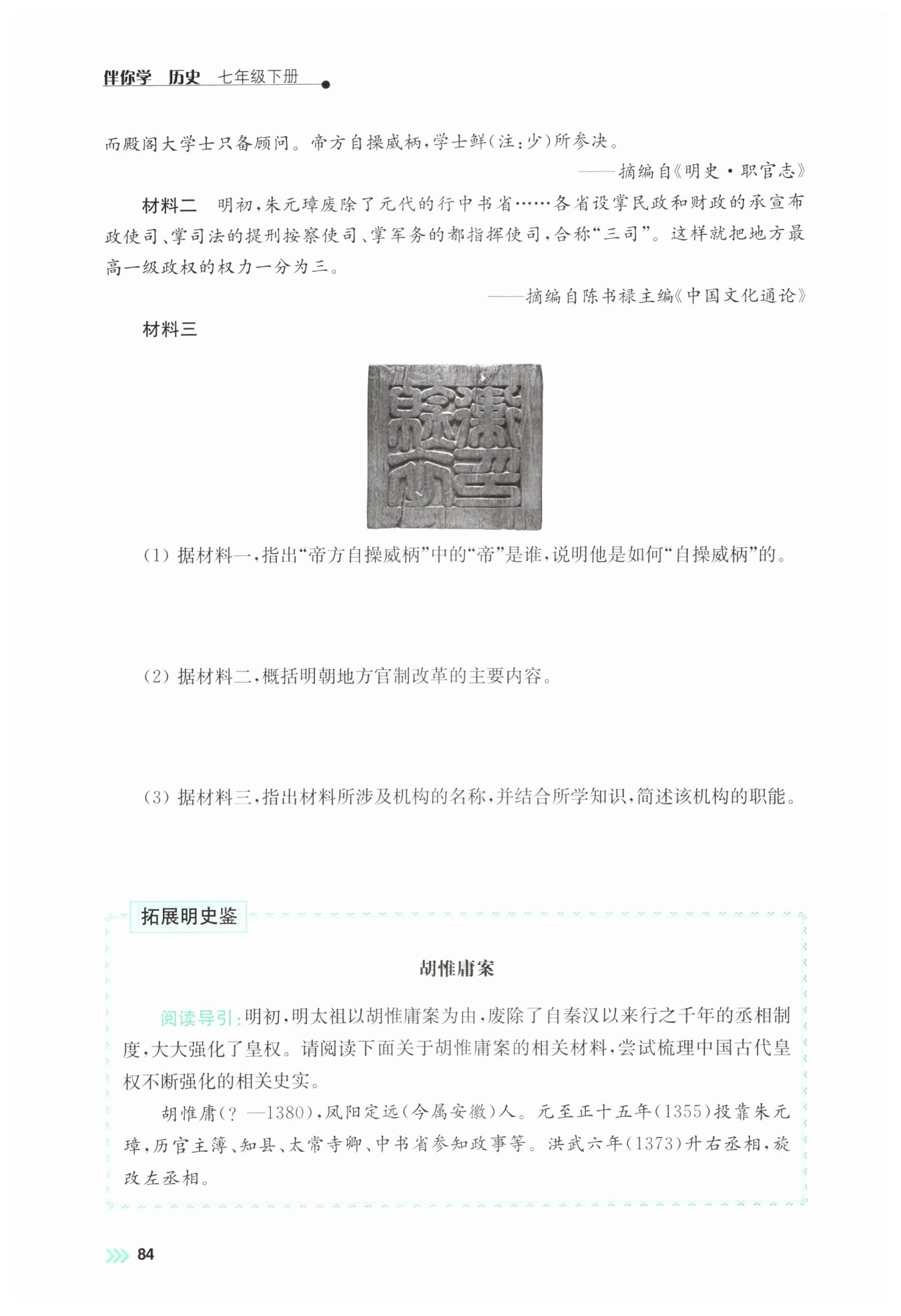 明太祖。在中央,明太祖为强化皇权,废除了丞相,提升吏、户、礼、兵、刑、工六部职权,使六部直接向皇帝负责。