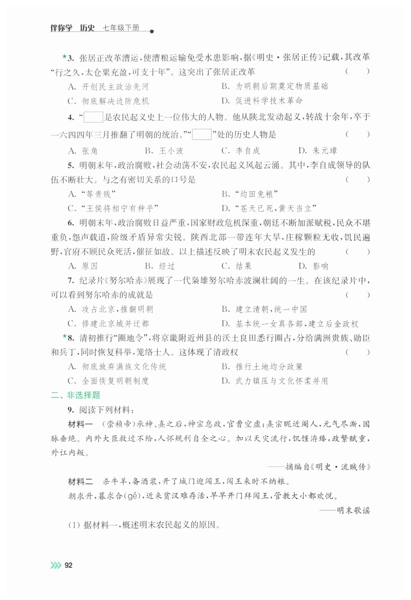 D选项:材料未提及科学技术相关内容,明朝并未发生科学技术革命,排除;