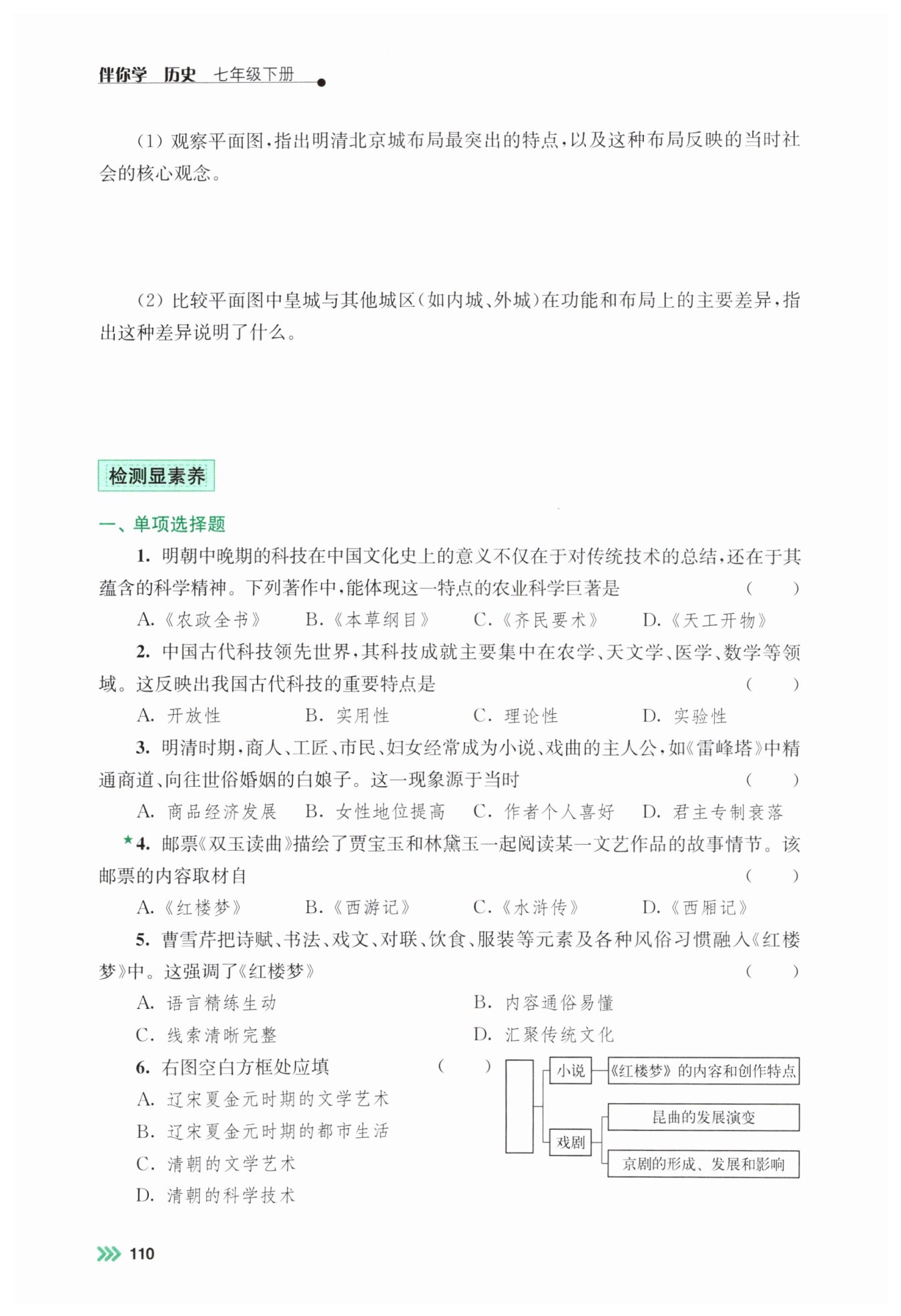 1. 选项A:《农政全书》是明朝徐光启编撰的农业科学巨著,既系统总结了中国传统农业的先进技术和经验,还引入了西方的农业科技知识,体现了对传统技术的总结与科学精神,符合题意。
