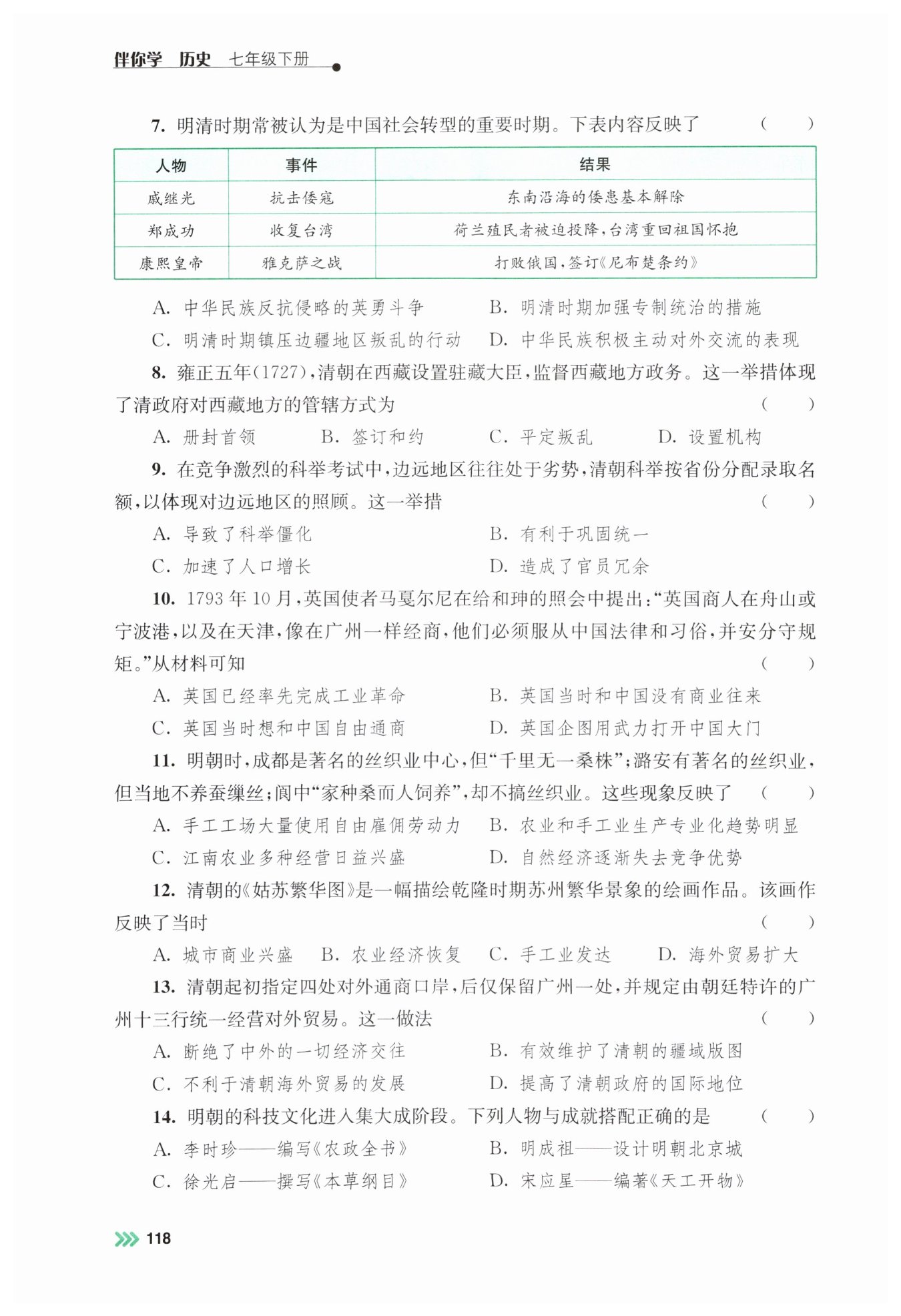 本题主要考查学生对明清时期不同类型历史事件的区分能力,需要准确辨别反侵略斗争、专制统治措施、平叛行动、对外交流的差异,同时要牢记明清时期典型的反侵略历史事件及其意义。