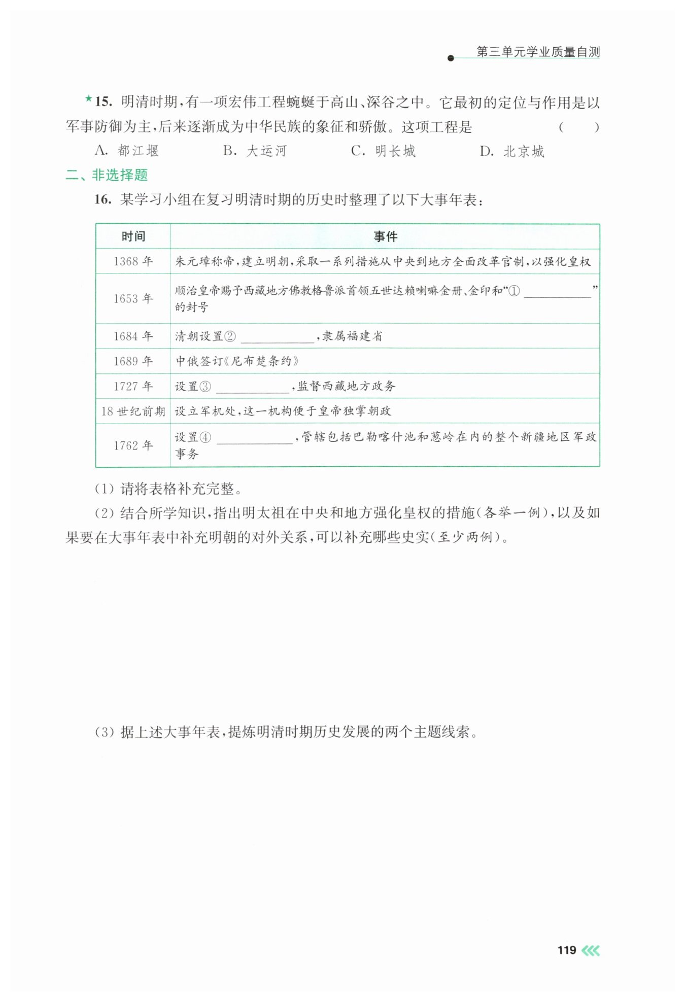 1. 先锁定时间“明清时期”:都江堰是战国时期修建的水利工程,大运河始建于隋朝,可先排除A、B选项;